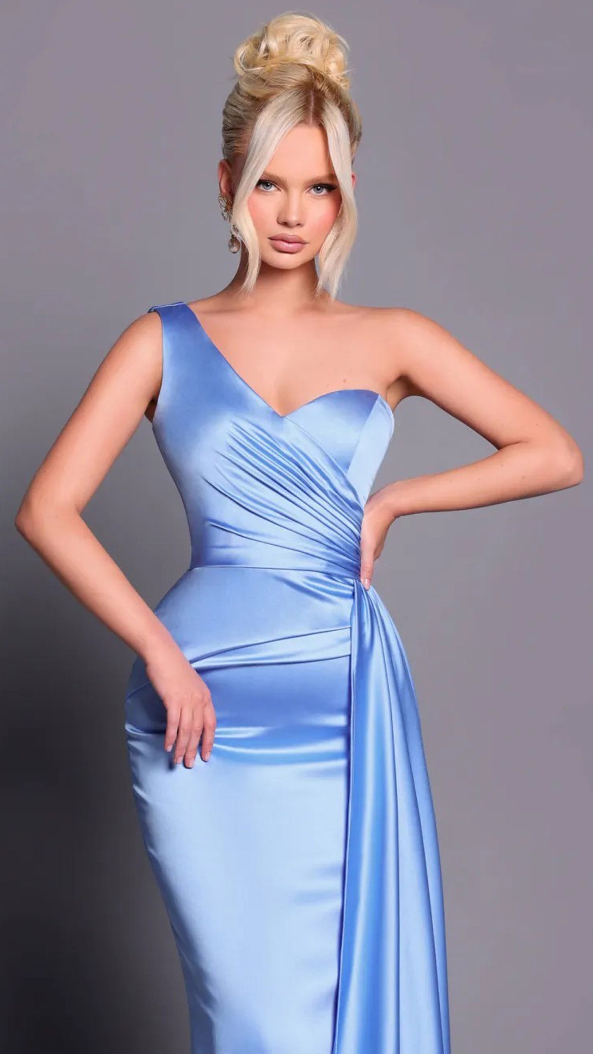 Nicoletta NBM2033 One Shoulder Satin Sash Gown features: