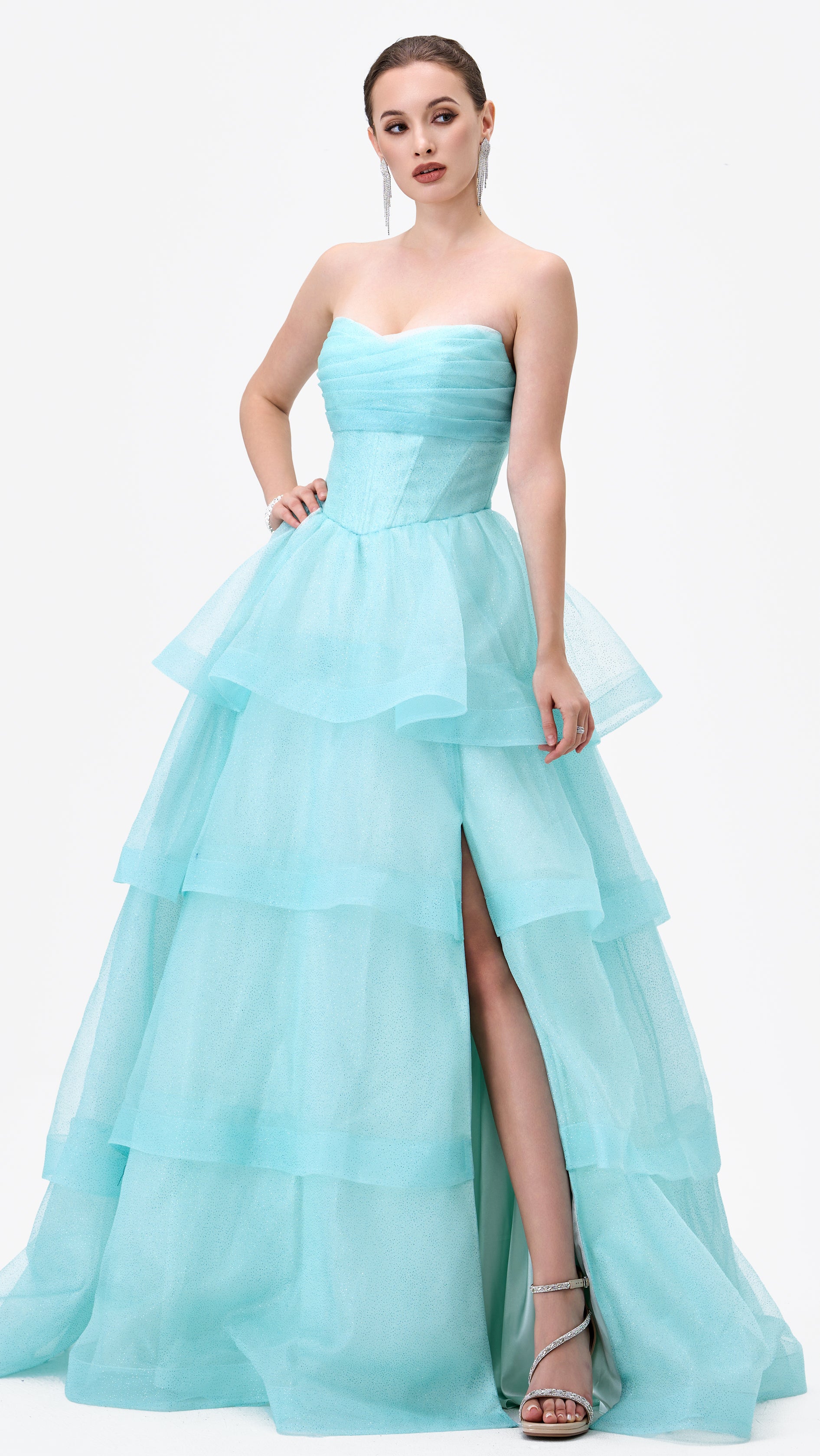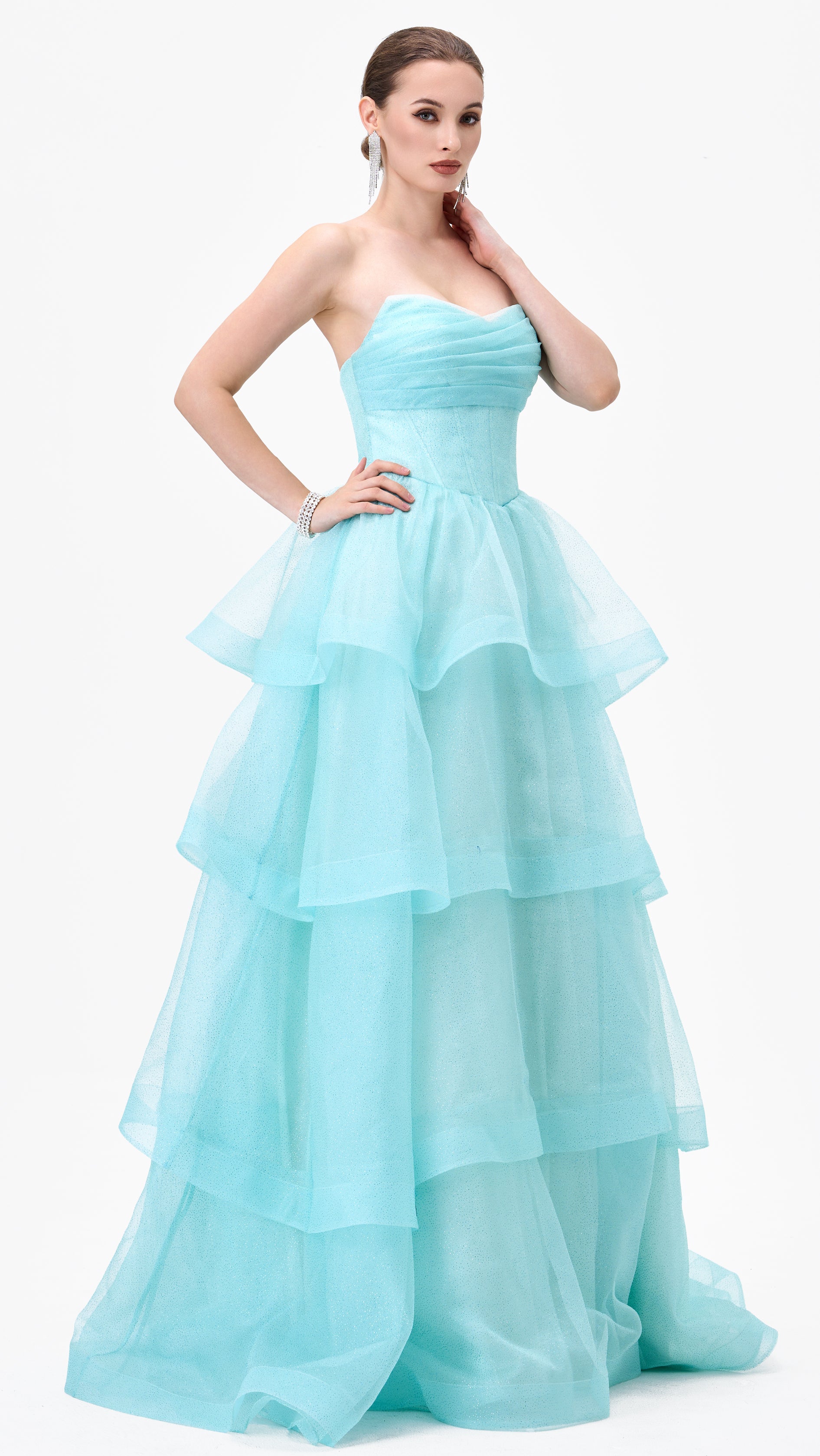 Tiff Strapless Tiered Ball Gown